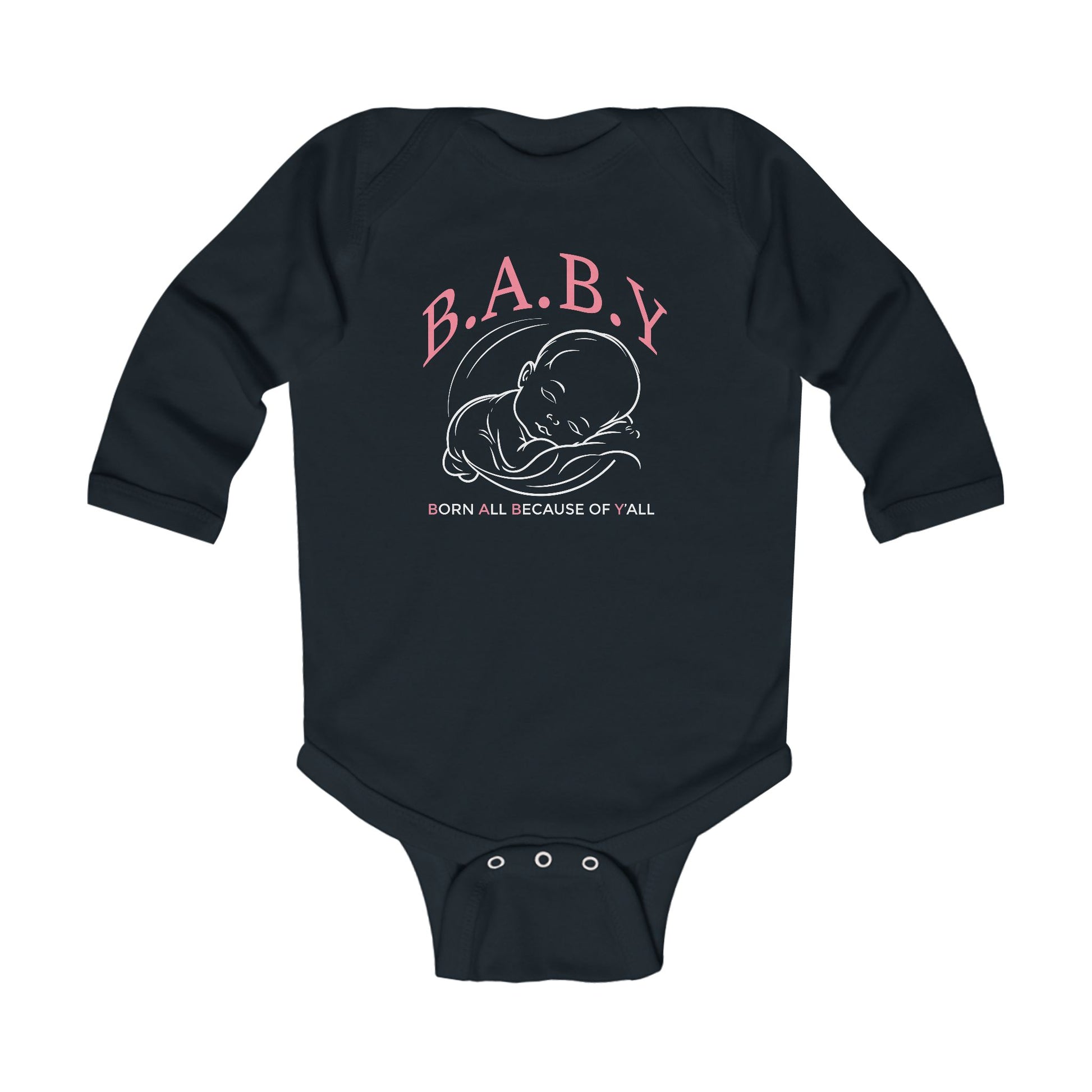 B.A.B.Y. (Born All Because of Ya'll) Cute Infant Long Sleeve Bodysuit