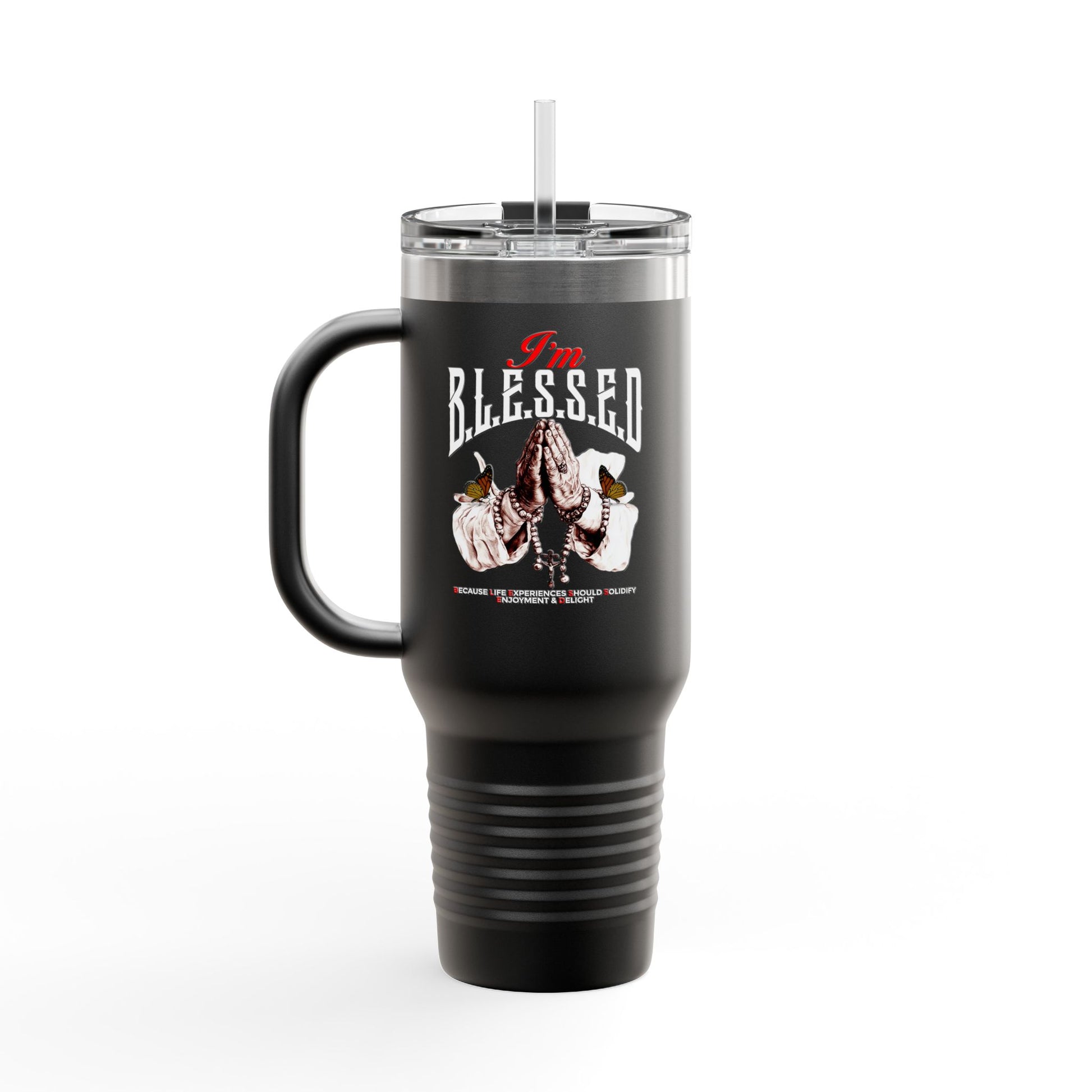 B.L.E.S.S.E.D. (Because Life Experiences Should Solidify Enjoyment & Delight) Insulated Travel Mug, 40oz | Perfect for Coffee Lovers, Gift for Travelers, Inspirational Drinkware, Motivational Mug, Holiday [...]