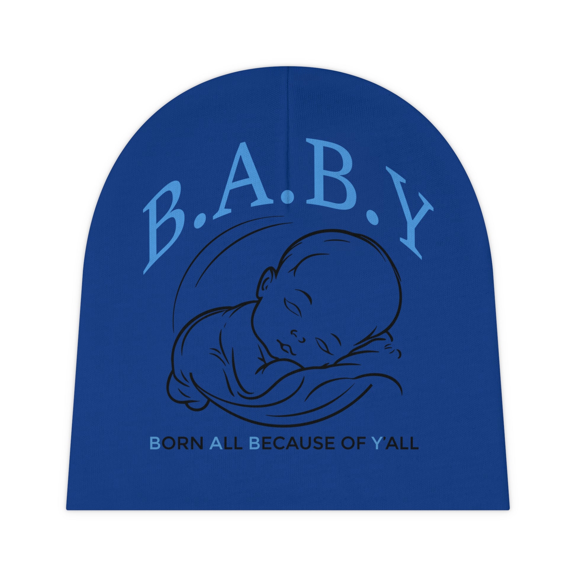 Baby Beanie with B.A.B.Y. (Born All Because of Ya'll) Design | Newborn Gift, Baby Shower, Infant Accessories, Cute Baby Hat, AOP Knitted Beanie