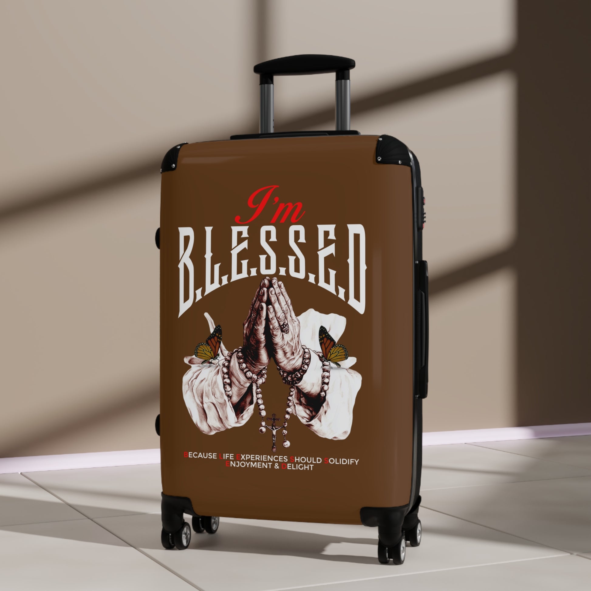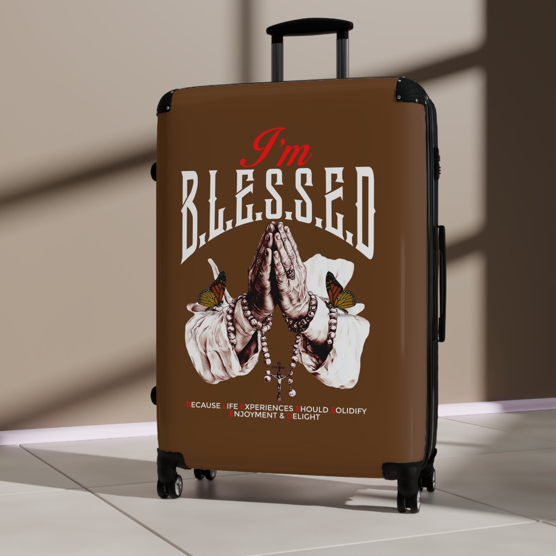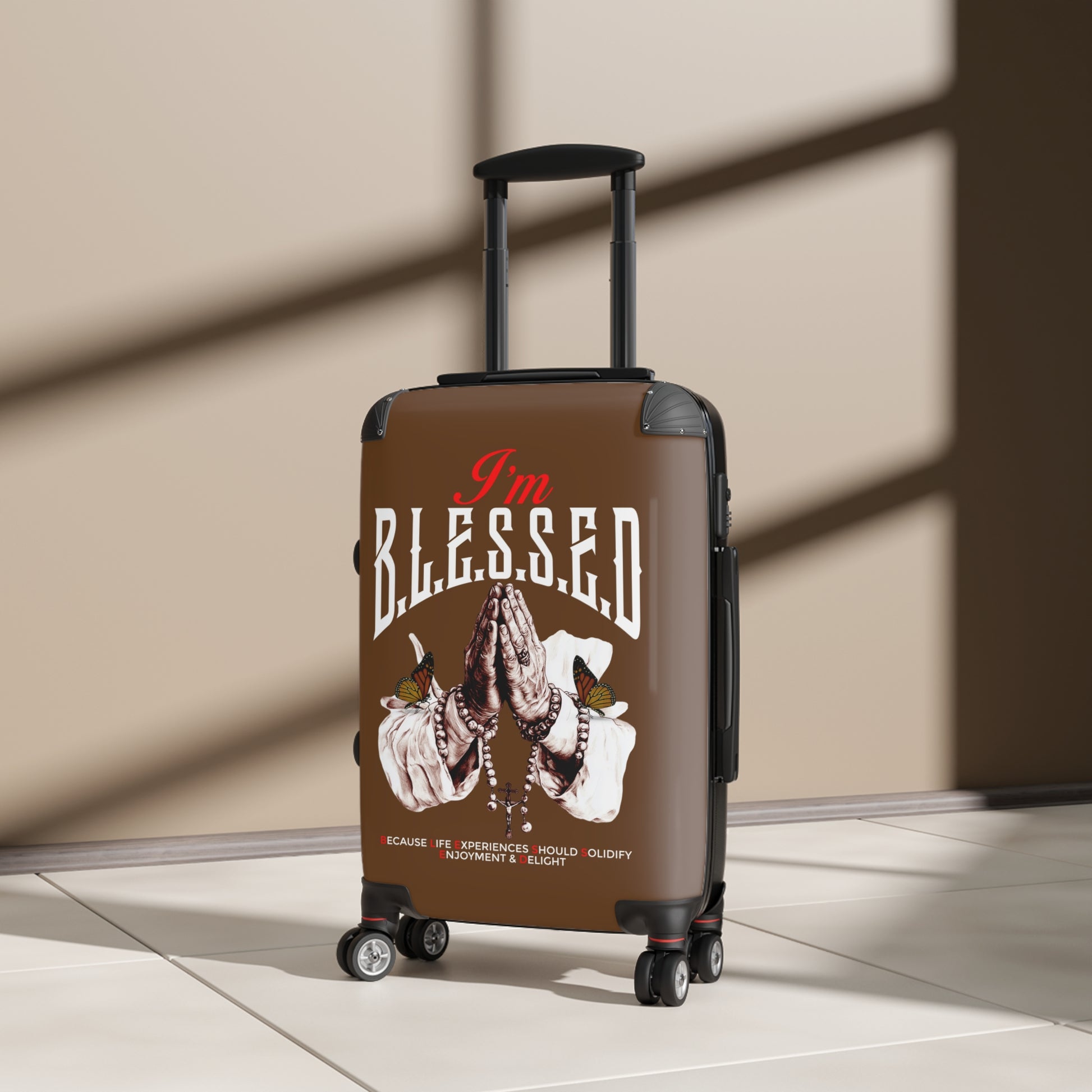 Blessed Suitcase - Travel Luggage, Inspirational Bag, Unique Gift for Travelers, Blessed Quote Design, Airport Ready