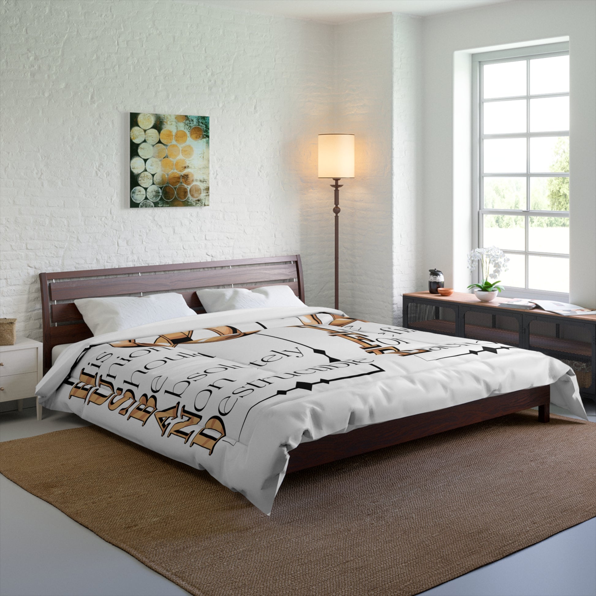 Transform your bedroom into a sanctuary of comfort and style with this stunning comforter. Featuring a heartfelt design that celebrates love and unity, this comforter is perfect for couples and newlyweds looking to add a personal touch to their space. The vibrant colors and intricate double square quilting create a visually appealing atmosphere, making your bed the focal point of the room. Crafted from soft, lightweight polyester, it offers cozy warmth without feeling heavy, ideal for all seasons. Whether it's a wedding gift, an anniversary celebration, or a cozy night's sleep, this comforter is a beautiful reminder of love and togetherness. Perfect for Valentine's Day, anniversaries, or housewarming gifts. Bring warmth and joy to your home with this exquisite piece that resonates with romance and affection.
