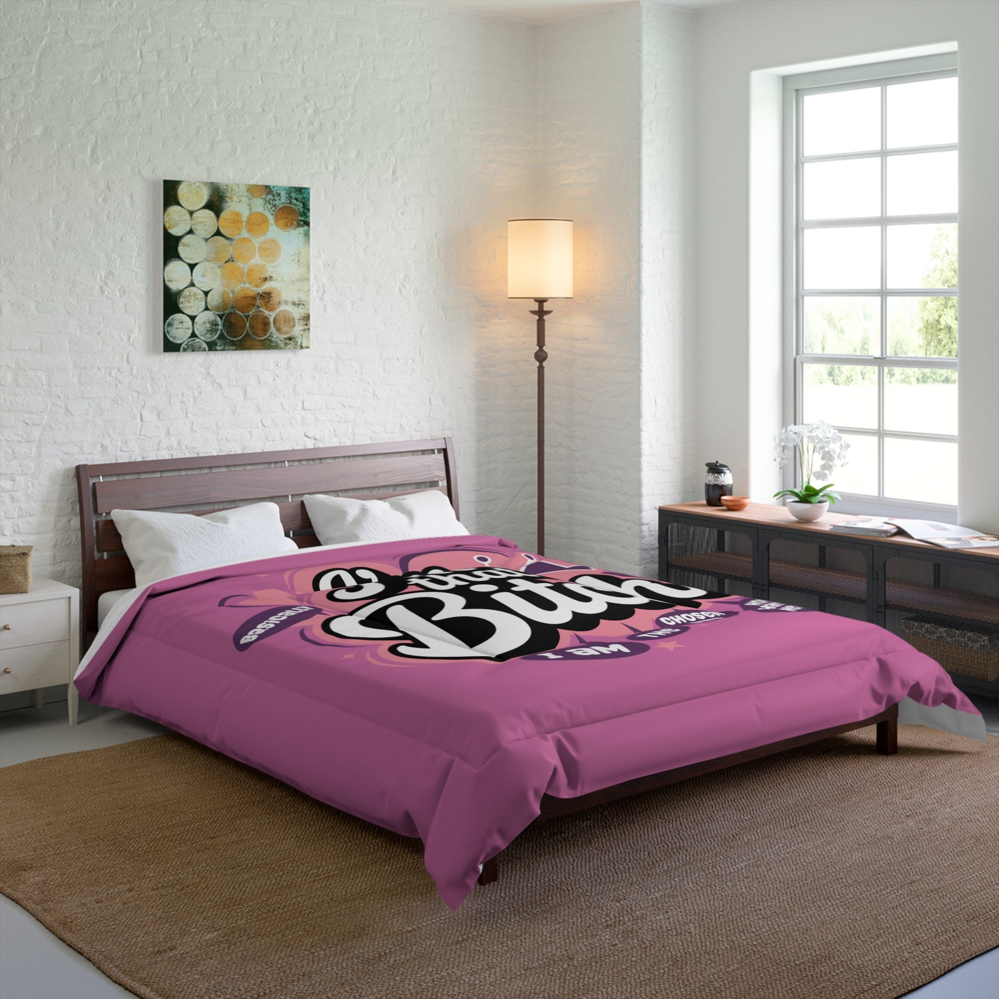 Transform your bedroom with this vibrant comforter that exudes playful confidence. Featuring a charming phrase design, this comforter adds a fun touch to your decor, making it perfect for expressing your personality. The high-quality polyester fabric ensures both softness and durability, perfect for snuggling up during cozy evenings or adding a pop of color to your space.