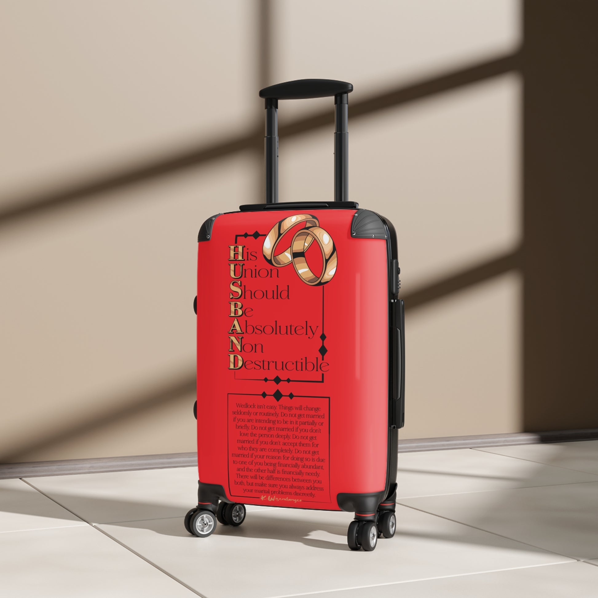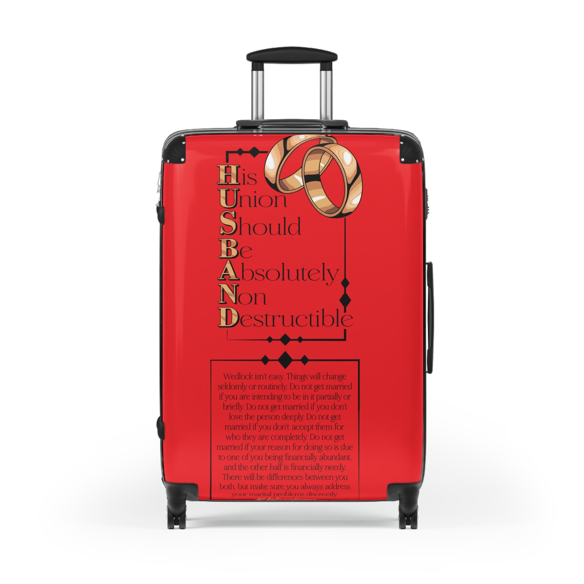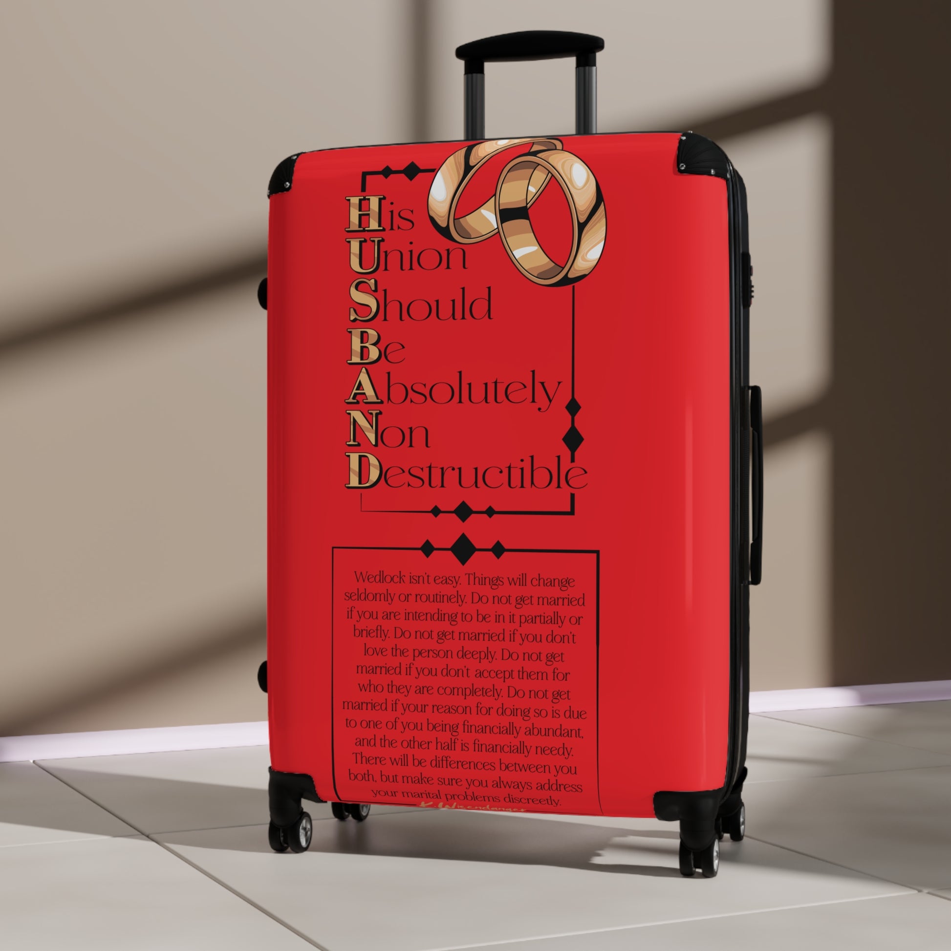 H.U.S.B.A.N.D. Durable Travel Suitcase for Couples, Wedding Gift, Unique Honeymoon Luggage, Personalized Travel Gear, Romantic Vacation Bag