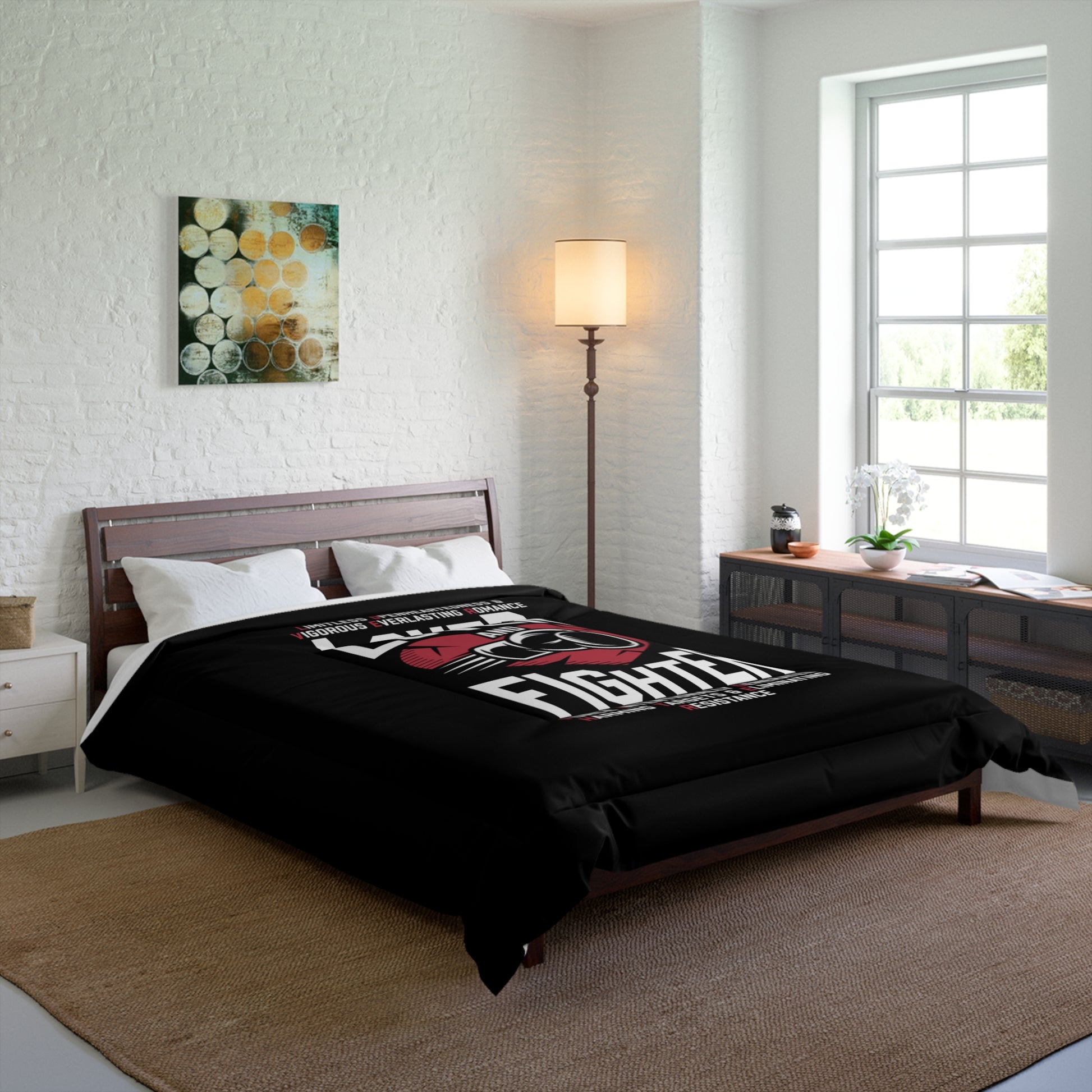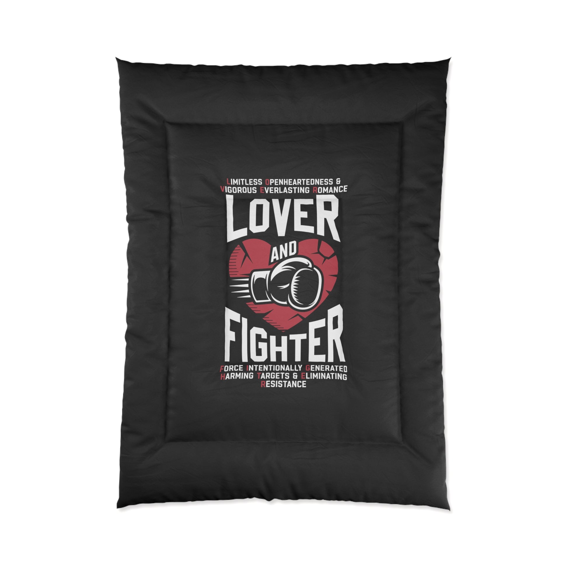L.O.V.E.R. & F.I.G.H.T.E.R. Comforter | Motivational Bedding, Sports Themed Decor, Gift for Boxing Fans, Home Decor, Man Cave Essentials