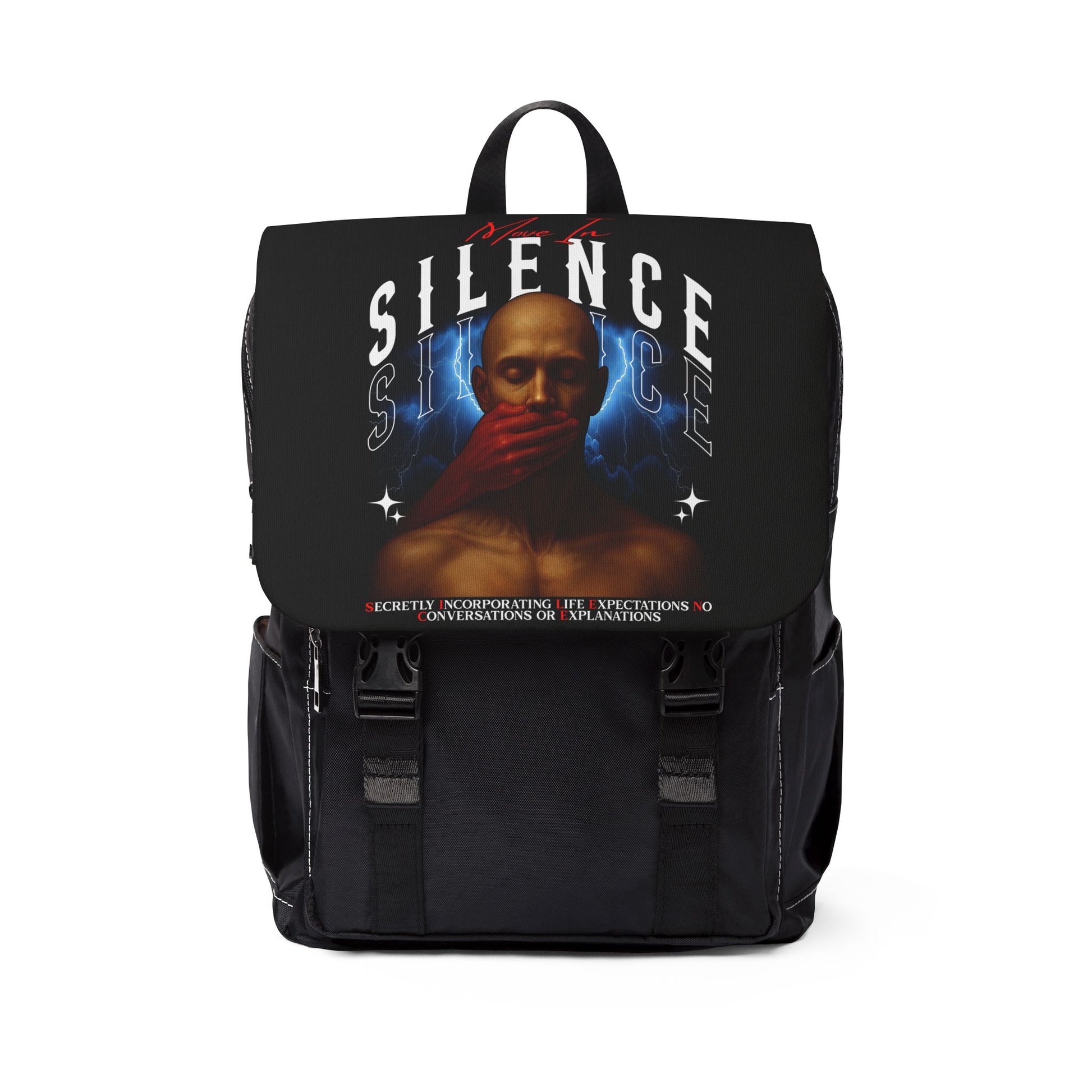 Move In S.I.L.E.N.C.E. Urban Art Unisex Casual Shoulder Backpack, Trendy Bag for Travel, School, Gym, Eco-Friendly Backpack, Gifts for Him or Her