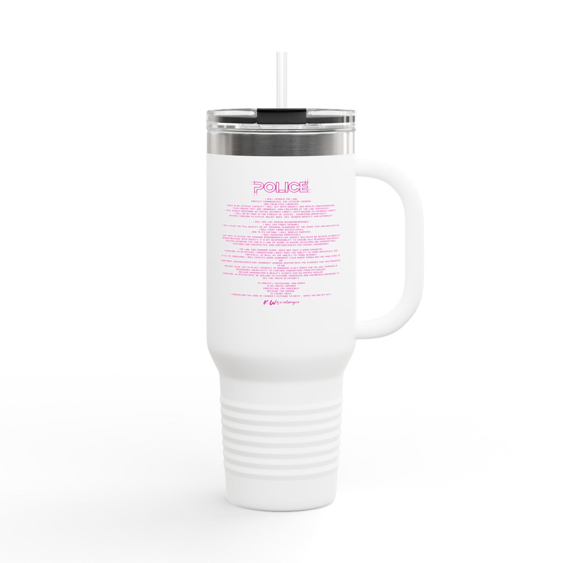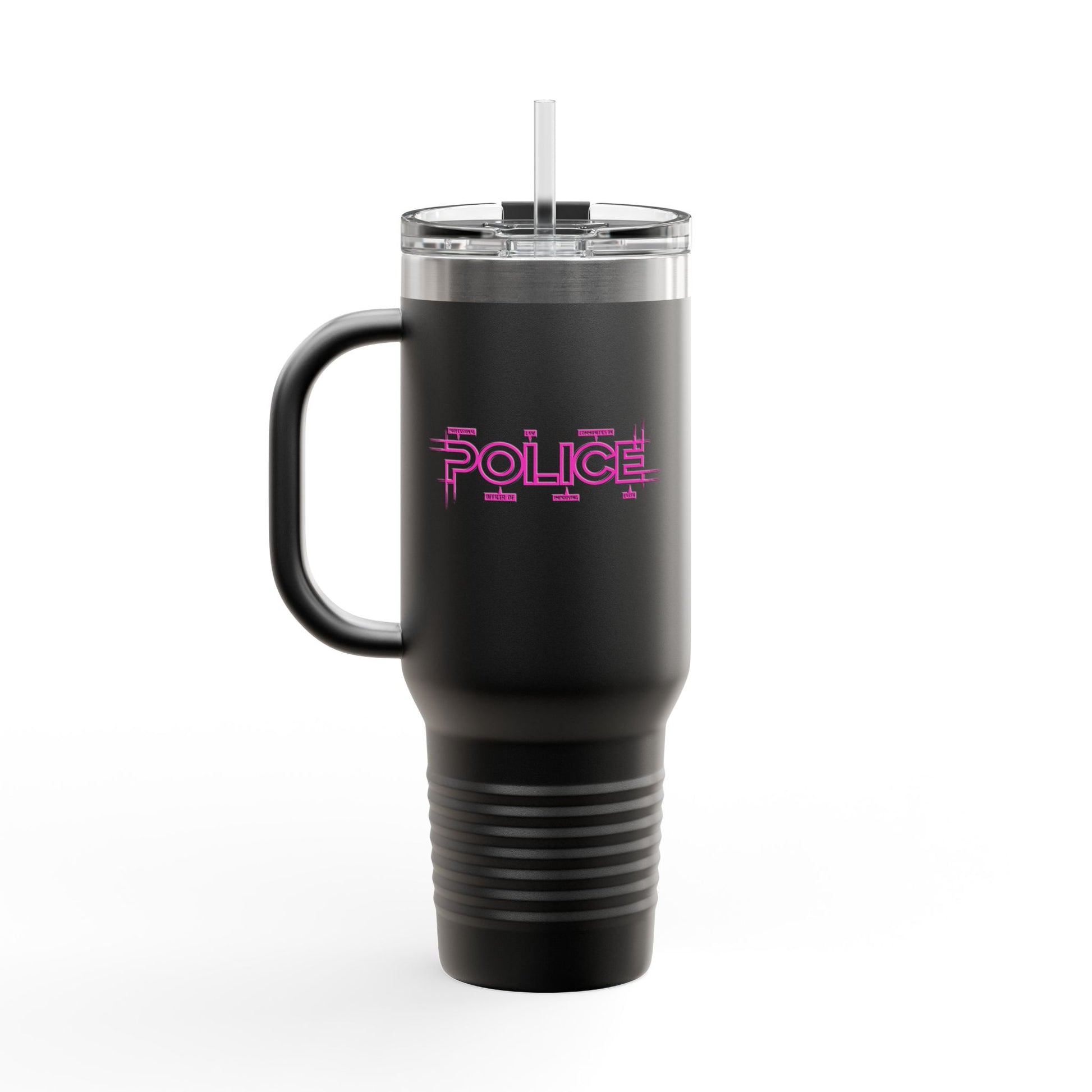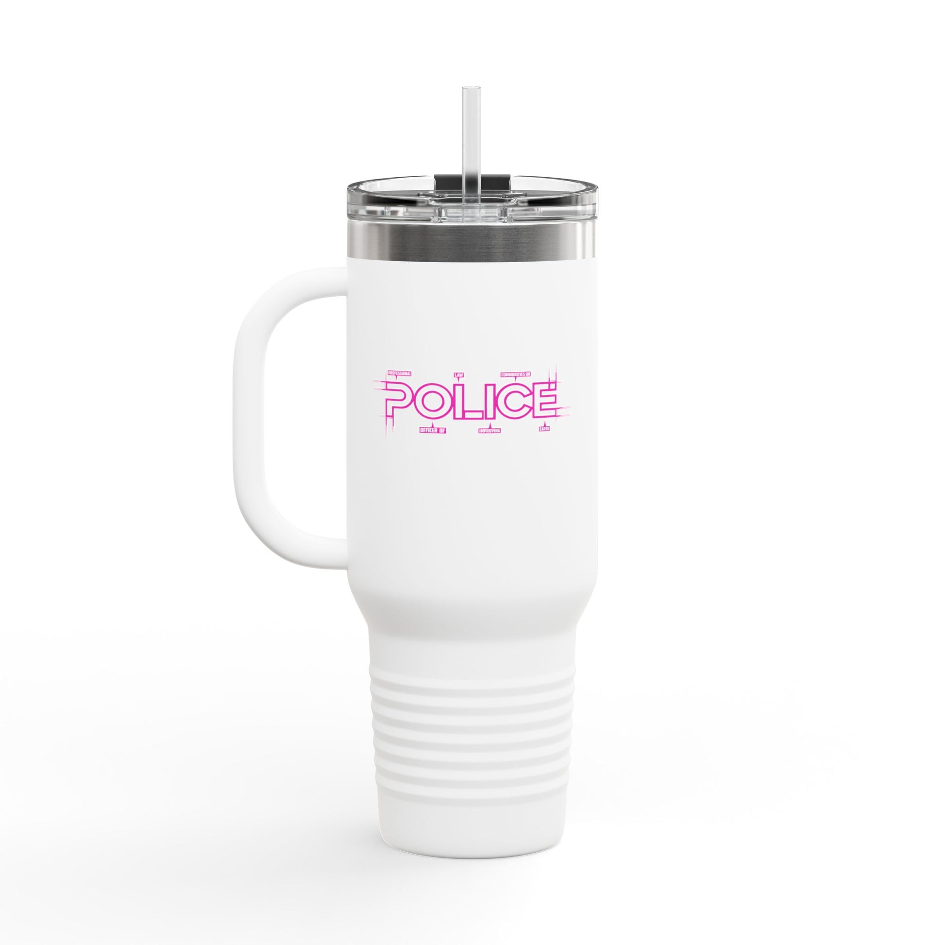P.O.L.I.C.E. (Professional Officer of Law Improving Communities on Earth) Stylish Insulated Travel Mug, 40oz – Perfect for On-the-Go Hydration, Law Enforcement, Commuters, Coffee Lovers, Summer Travels, Gift for Him/Her