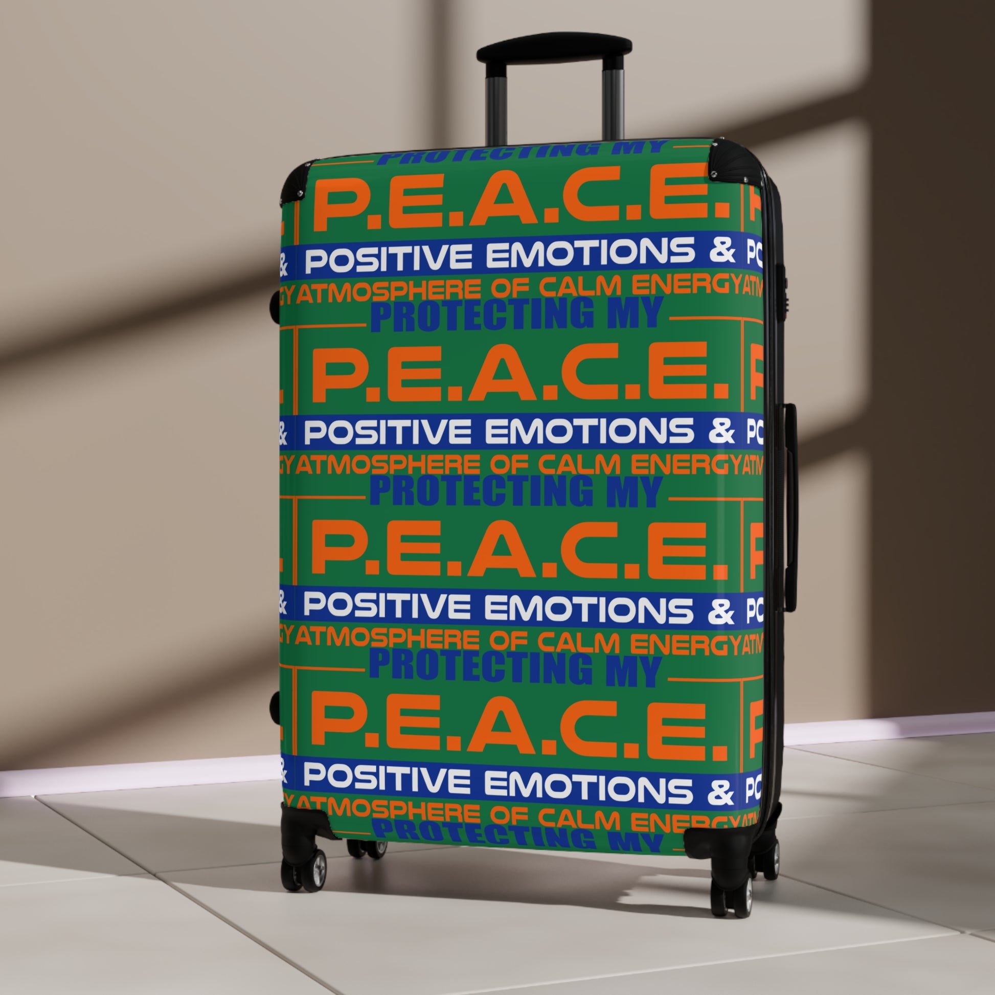 Protecting My PEACE l Vibes Suitcase | Travel Luggage for Stress-Free Journeys, Positive Emotions, Adventure, Gifts for Travelers