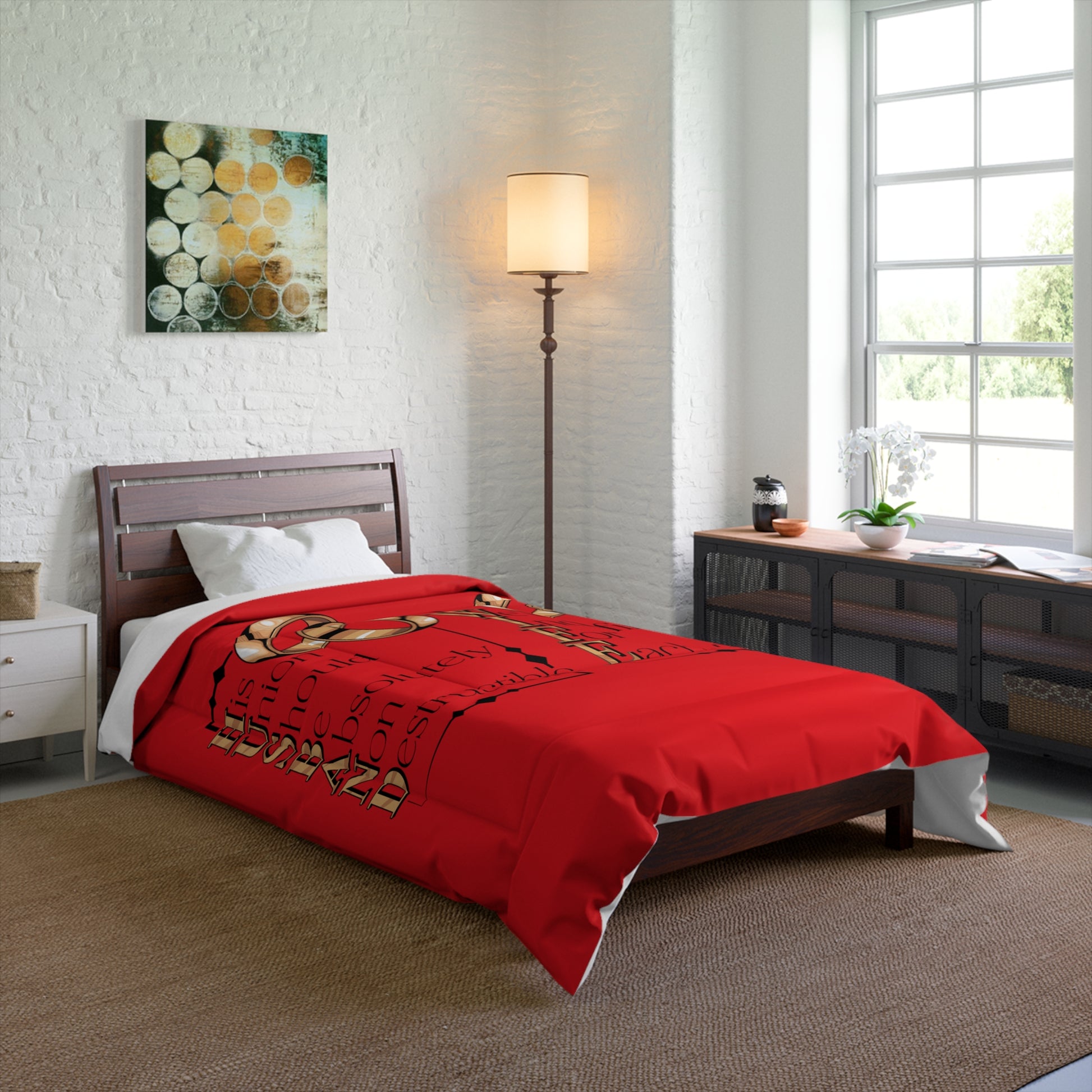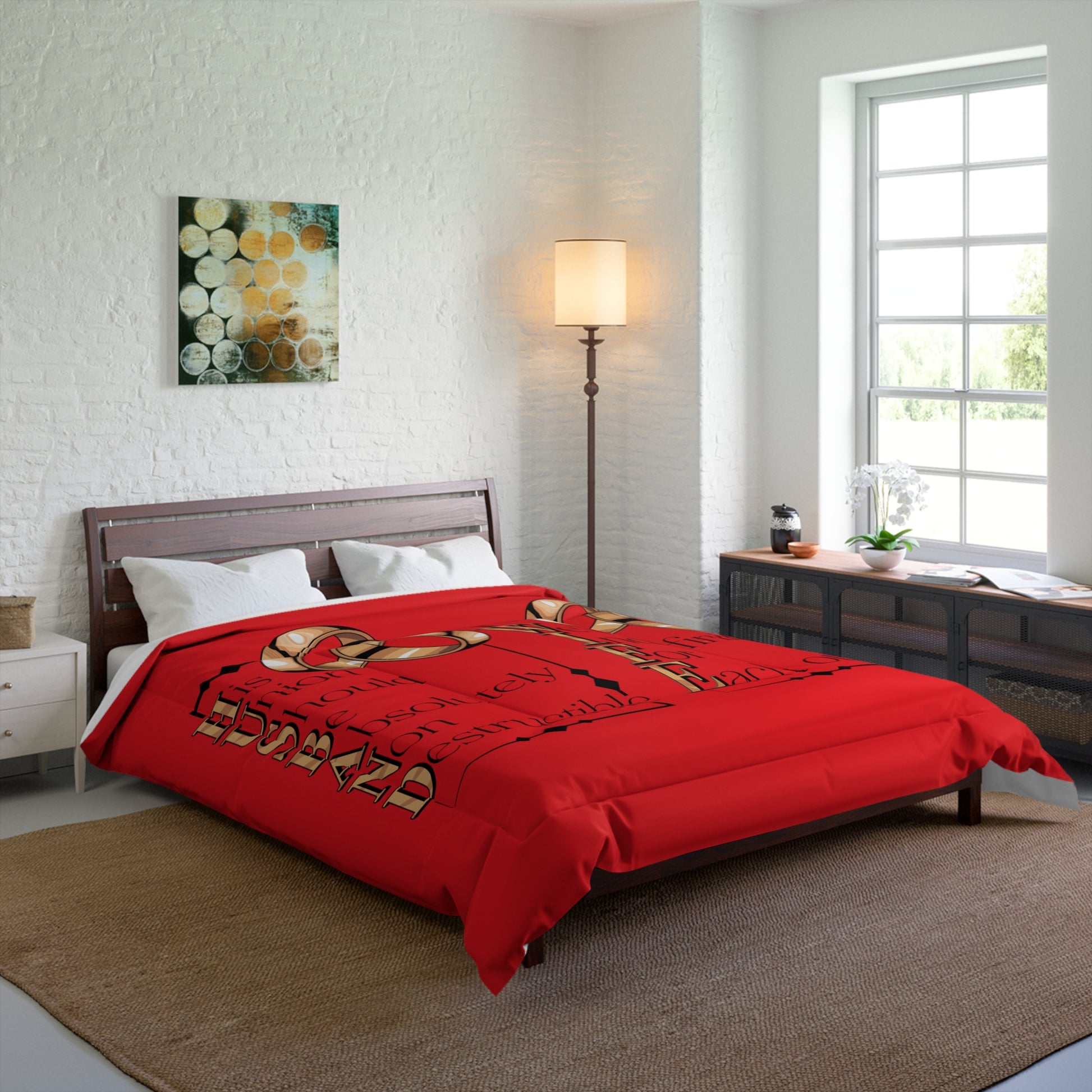 Transform your bedroom into a cozy retreat with this eye-catching comforter. Featuring a bold design that celebrates love and connection, it brings warmth and a splash of color to any space. Perfect for couples or anyone looking to add a romantic touch to their decor, this comforter is ideal for anniversaries, weddings, or special celebrations of love. Its lightweight and soft polyester material ensures comfort on all nights, making your personal space inviting and vibrant. It's a perfect gift for newlyweds or partners on Valentine's Day, birthdays, or just to show appreciation. Embrace the beauty of togetherness with this lovely addition to your home.