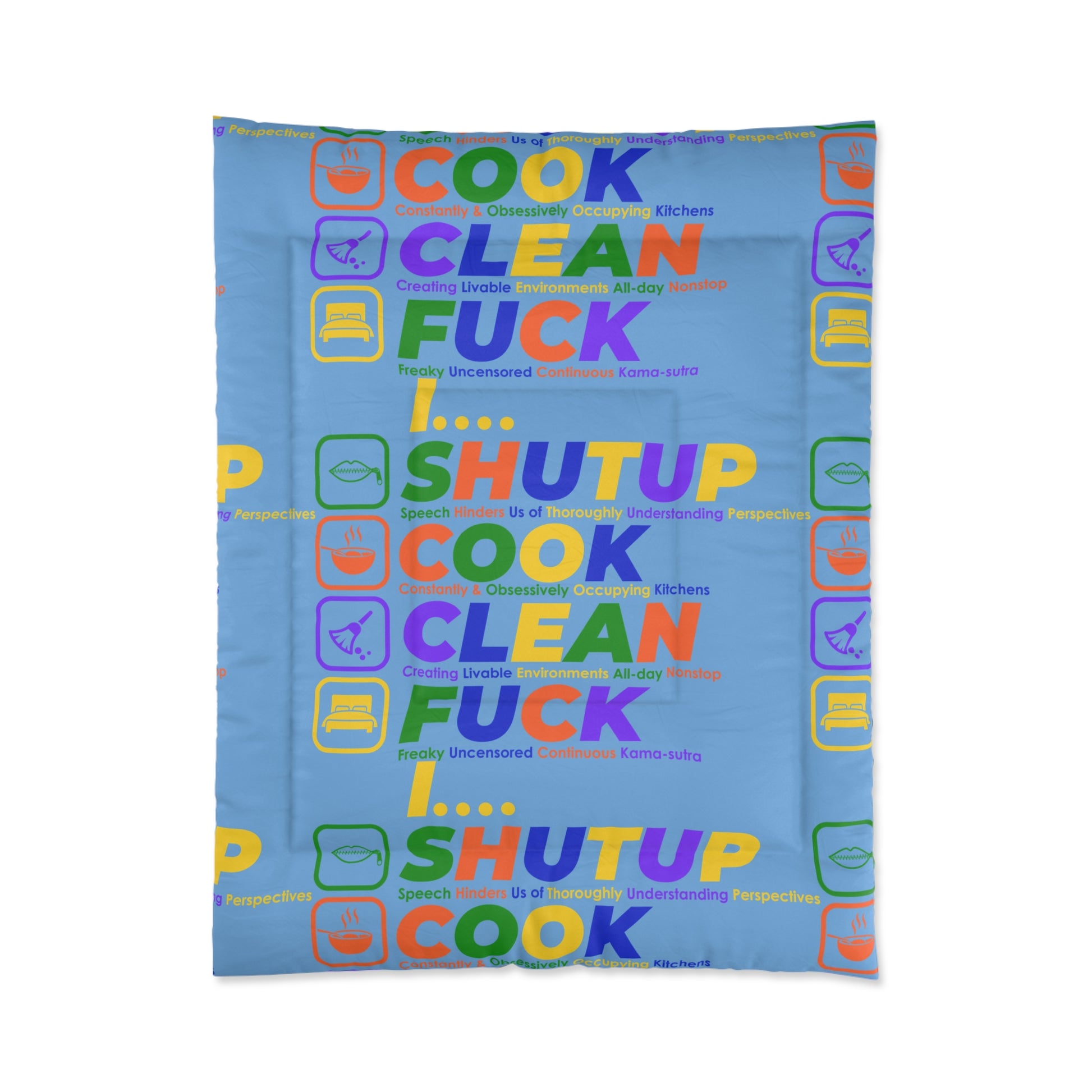 SHUT UP COOK CLEAN FUCK Comforter for Fun Bedroom Decor, Cozy Bedding for Teens, Unique Gift for Friends, Playful Home Accessories