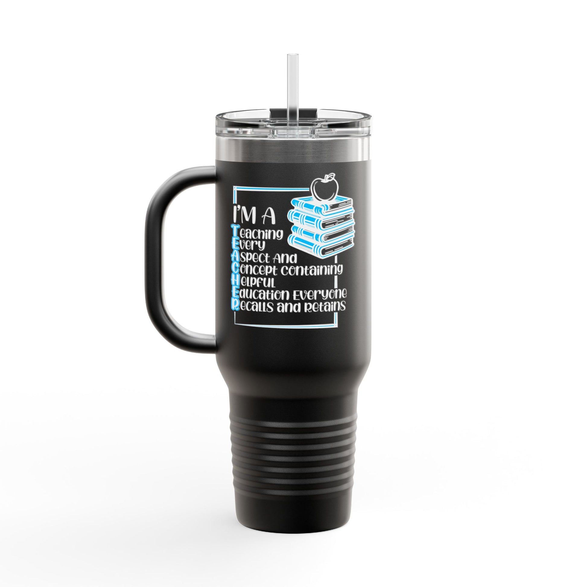 T.E.A.C.H.E.R. Insulated Travel Mug with Motivational Quote, 40oz Coffee Cup for Educators, Hiking, Gift for Travelers, Unique Drinkware, Adventure Mug