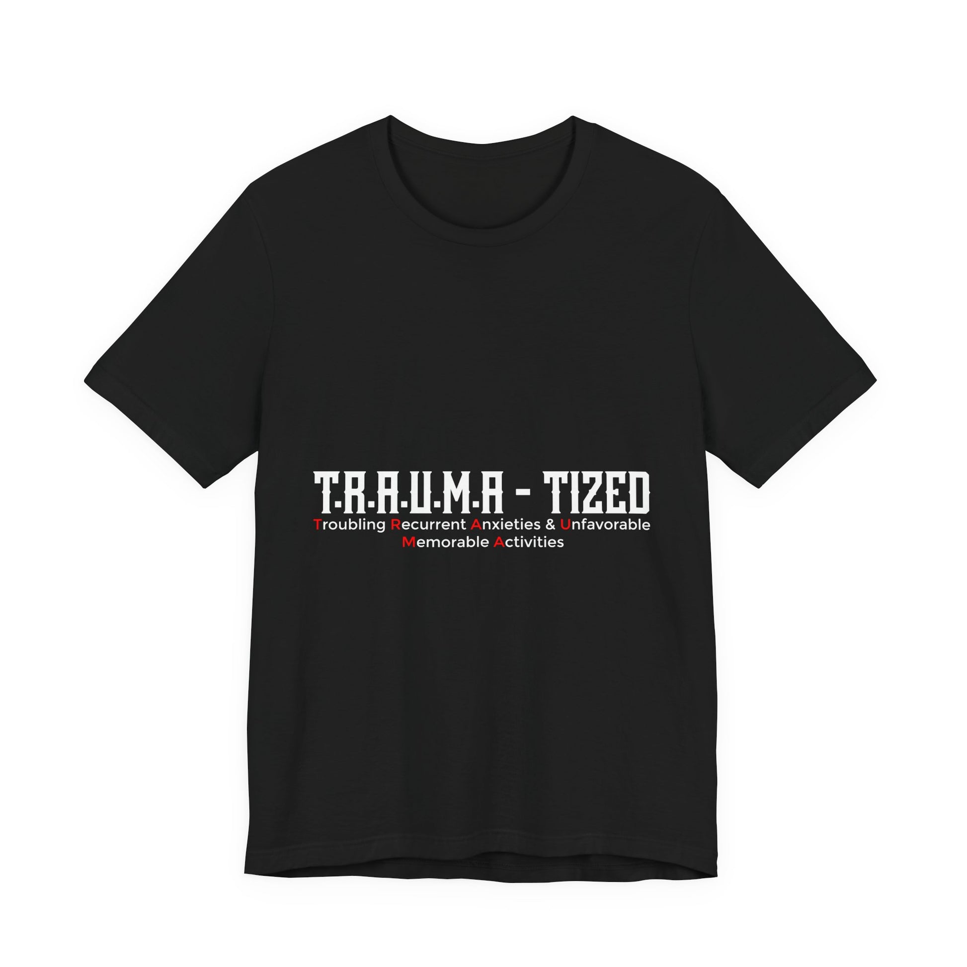 Trauma-Tized Tee — Mental Health Awareness Graphic Shirt (front text: T.R.A.U.M.A - TIZED)