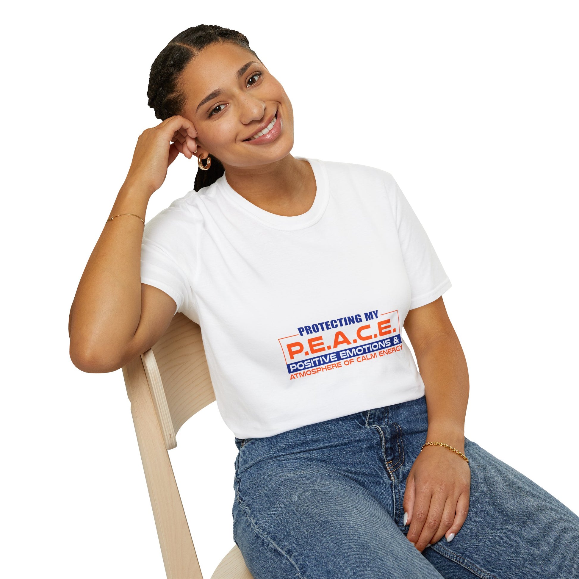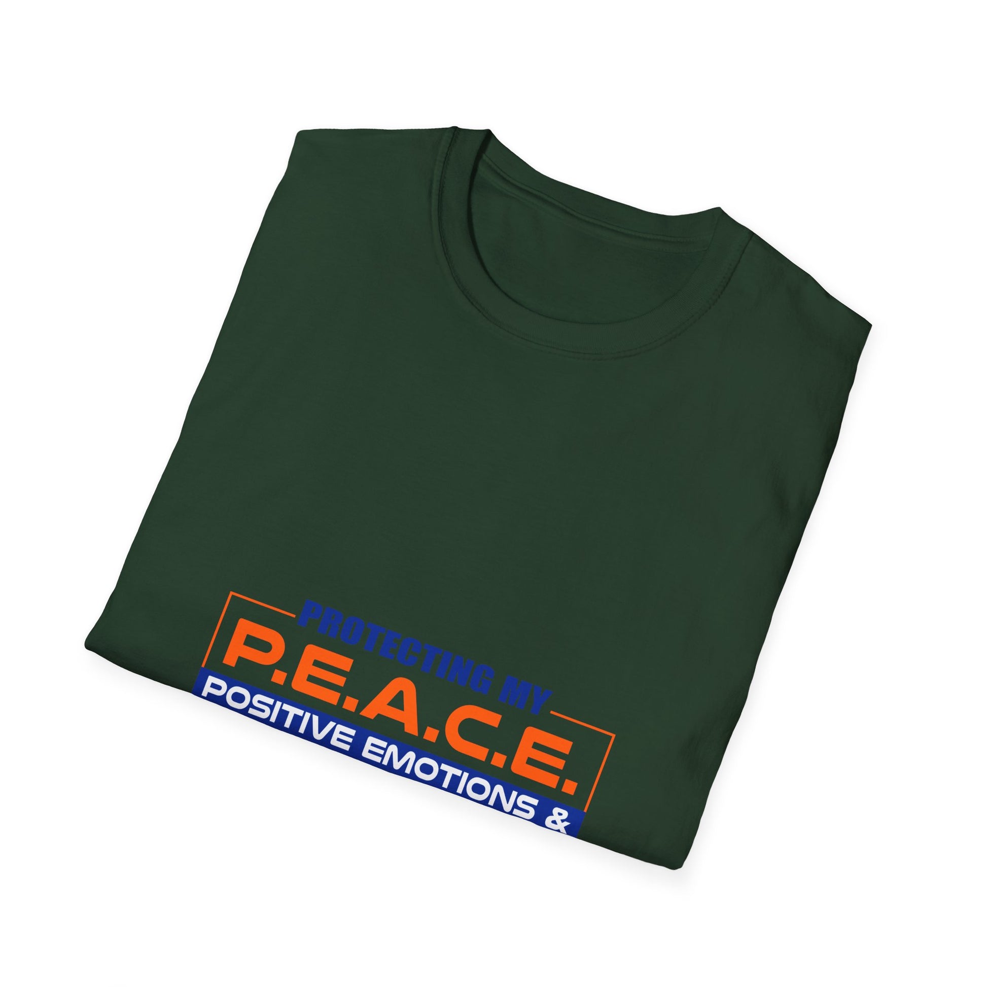 Introducing our unisex t-shirt, a perfect blend of comfort and style that exudes positivity and tranquility. This t-shirt features the uplifting slogan "Protecting My P.E.A.C.E. - Positive Emotions & Atmosphere of Calm Energy," making it an ideal choice for anyone looking to spread good vibes. Whether you're lounging at home, running errands, or attending casual gatherings, this tee fits seamlessly into your everyday life. It's a thoughtful gift for friends, family, or anyone who values peace and mindfulness. Perfect for occasions like birthdays, holidays, or simply as a self-care treat! Celebrate your journey toward tranquility with this stylish reminder to keep your peace intact.